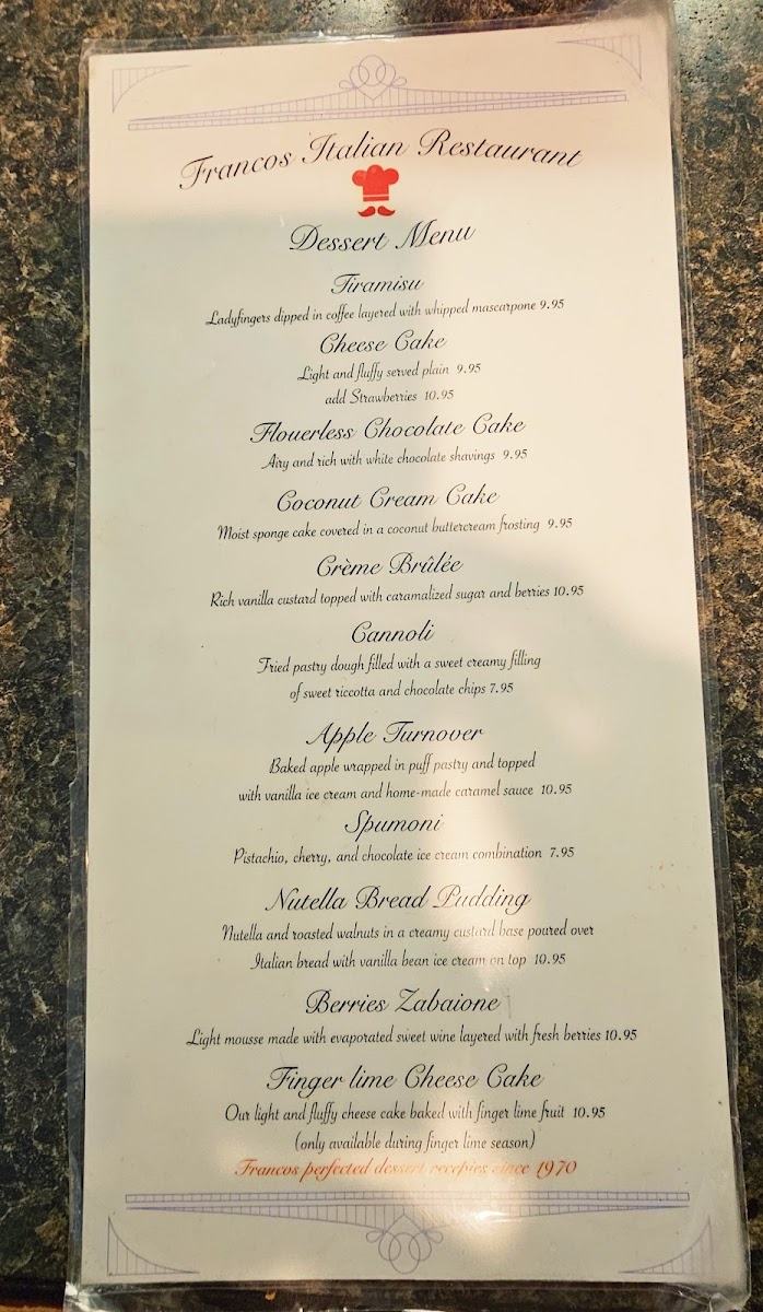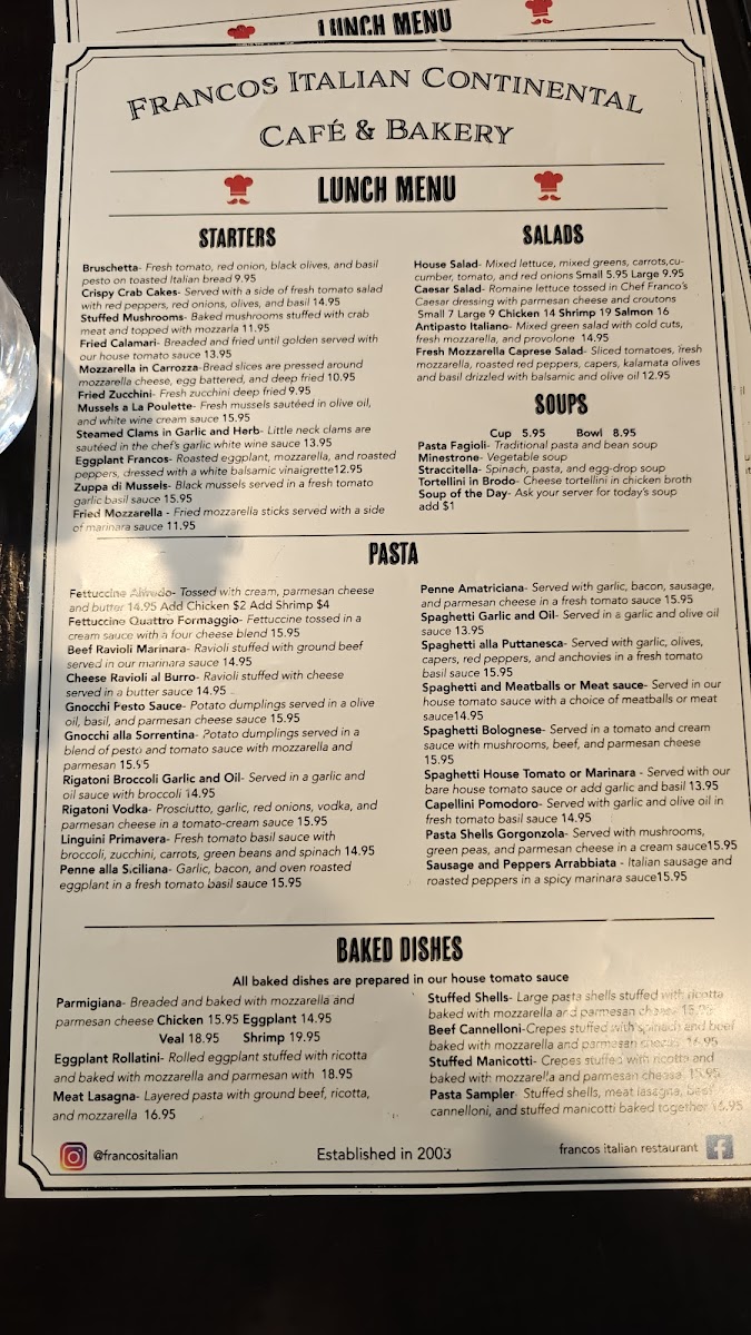 Romaine lettuce tossed in Chef Francos homemade Caesar dressing with parmesan cheese and croutons.