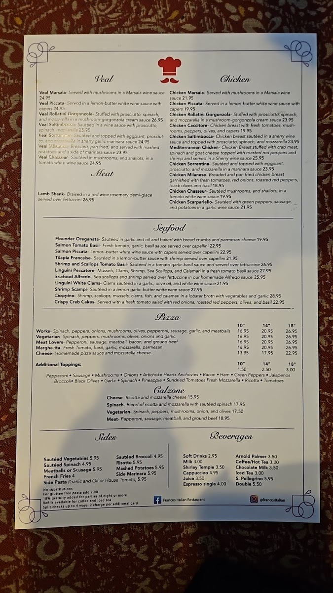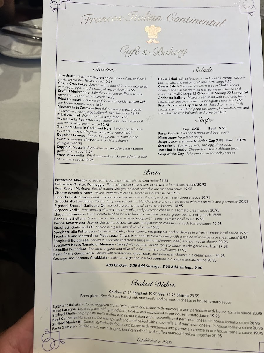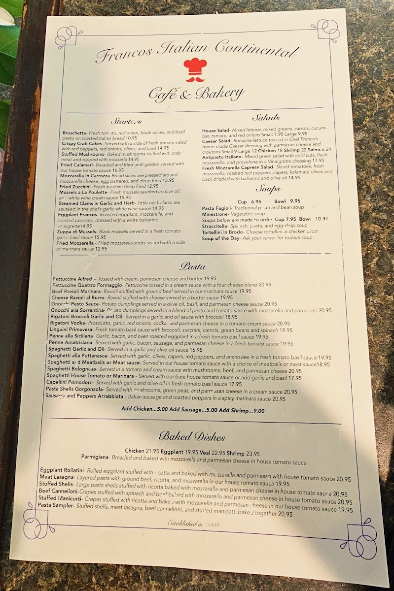 Sautéed in a wine sauce with prosciutto, spinach, mozzarella.
