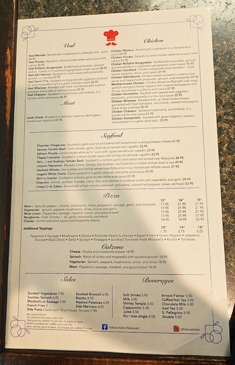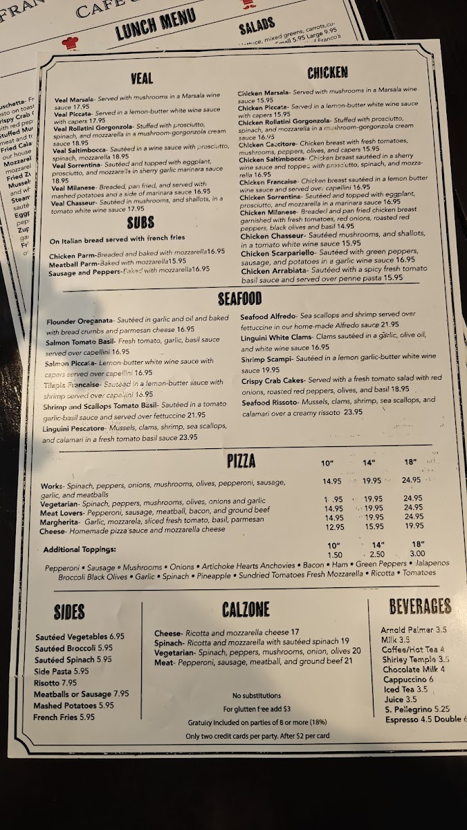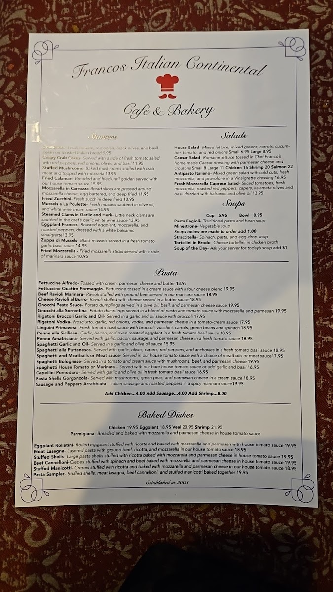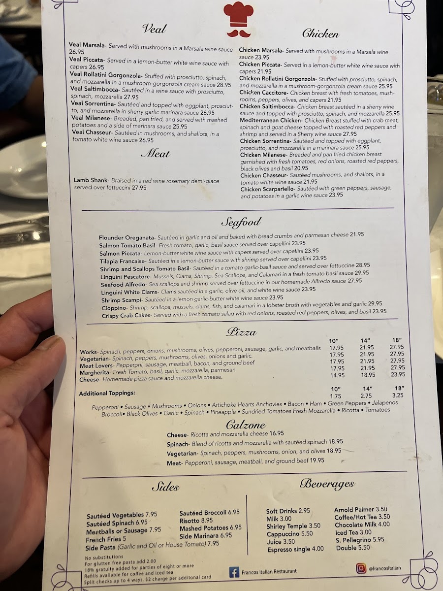 Sautéed in a wine sauce with prosciutto, spinach, mozzarella.
